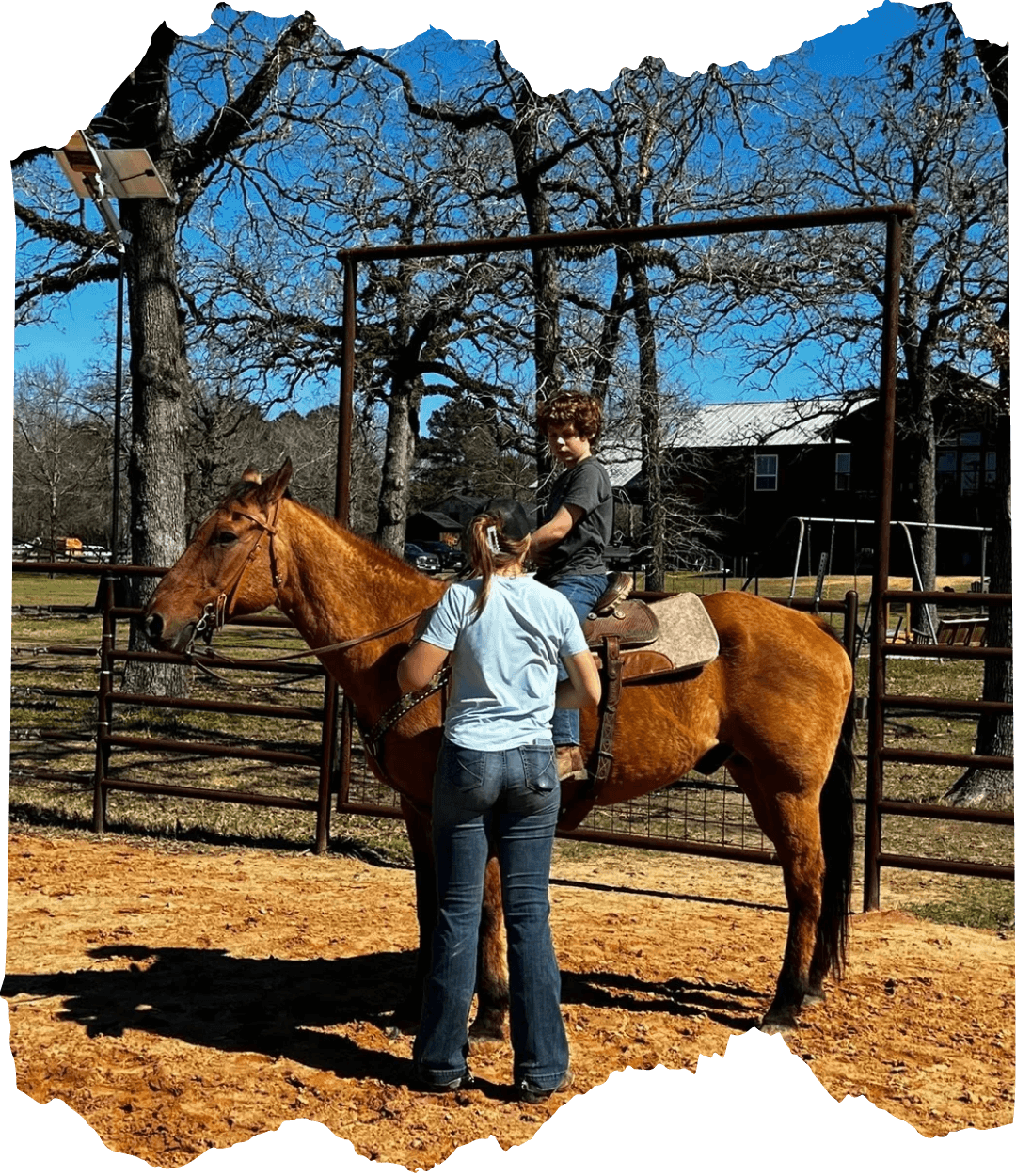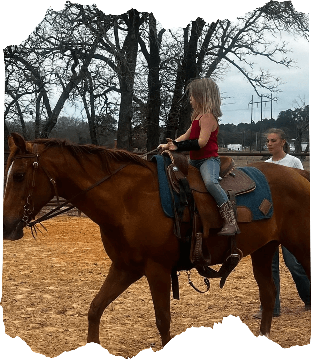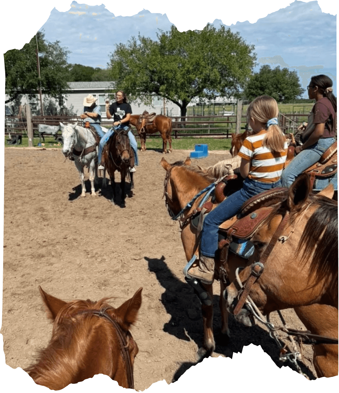 Beginner Friendly Instruction: New to horseback riding? We start with the basics to help build a strong foundation. Beginner lessons include grooming, hoof care, tacking up, saddle adjustments, and basic riding control to help riders feel comfortable and confident around horses.